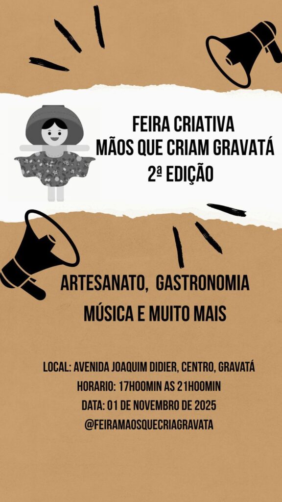 A Feira Criativa – Mãos que Criam Gravatá te convida a participar da 2ª edição, que acontece neste sábado, 1º de novembro, das 17h às 21h, na Avenida Joaquim Didier, nas tradicionais casinhas de madeira da Vila.