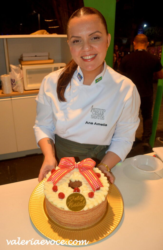 A chef confeiteira Ana Amélia, responsável pela apresentação do bolo natalino de bolo de rolo, celebrou a recepção do público. “Ensinar uma receita tão simbólica e que faz parte da memória afetiva nordestina é sempre gratificante. Aqui na Vila, o acolhimento é enorme e poder compartilhar conhecimento com tanta gente interessada torna tudo ainda mais especial”, comentou.